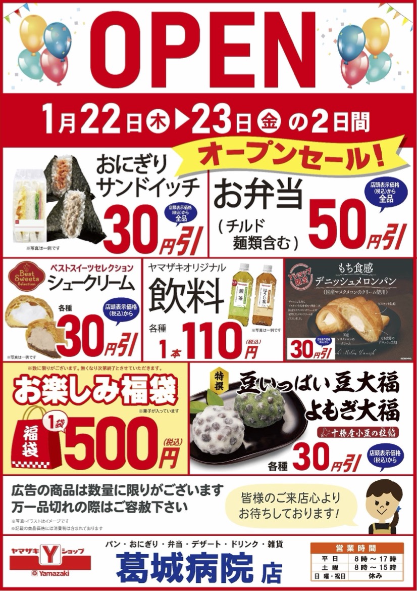 1月22日(木)より、院内に「ヤマザキYショップ」がオープンします。